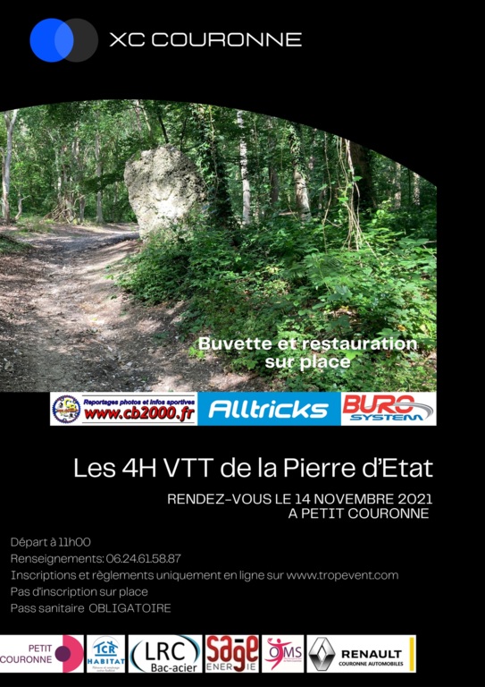 Dimanche 14 Novembre se dérouleront les 4h de VTT de LA PIERRE D'ETAT à PETIT COURONNE.