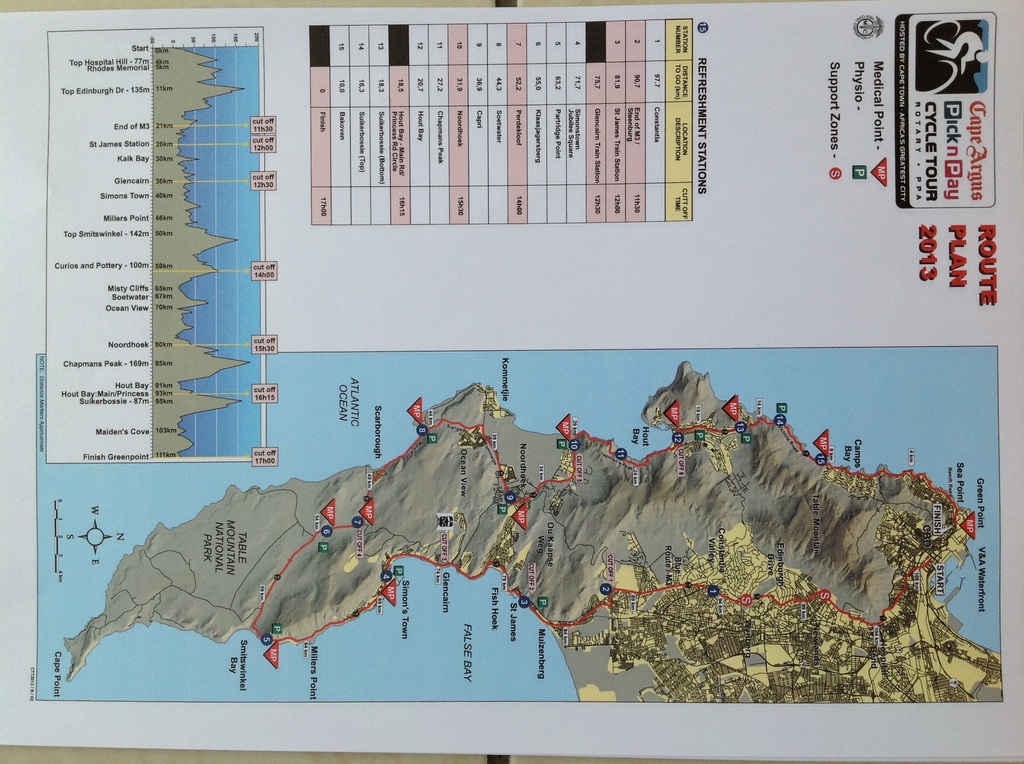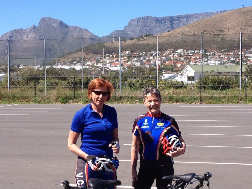 Bonjour à tous, De retour d'Afrique du Sud, Françoise et moi avons participé à la plus grande cyclo du monde, 36.000 participants. Il s'agit de faire le tour du Cap de Bonne Espérance, 109 km avec une dénivelée de 1121 m. Les paysages étaient magnifiques, une organisation remarquable et 25 à 30°C pendant que vous aviez froid sous la neige! Je joins quelques photos du Cap. À bientôt, Les Filles.