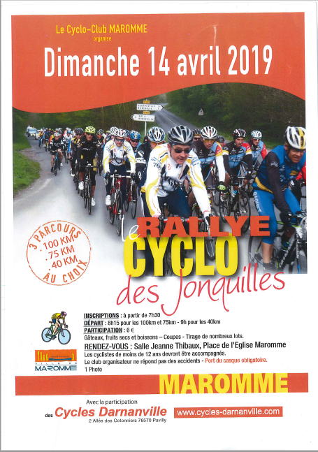Dimanche 14 Avril, nos amis de MAROMME organisent le Rallye des Jonquilles 2019. Départ à 8h15 devant l'église de MAROMME. Inscription à partir de 7h30
