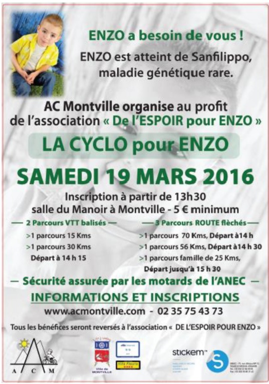 L'AC MONTVILLE organise une sortie au profit de l'association "De l'espoir pour Enzo" le samedi 19 mars.
