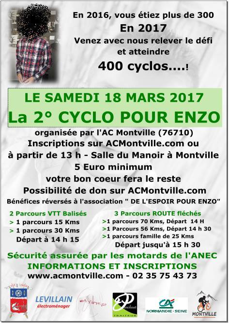 Samrdi 18 Mars après midi aura lieu la sortie organisée à MONTVILLEpour récolter des fonds pour un petit garçon qui lutte contre la maladie.