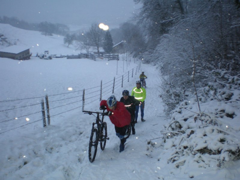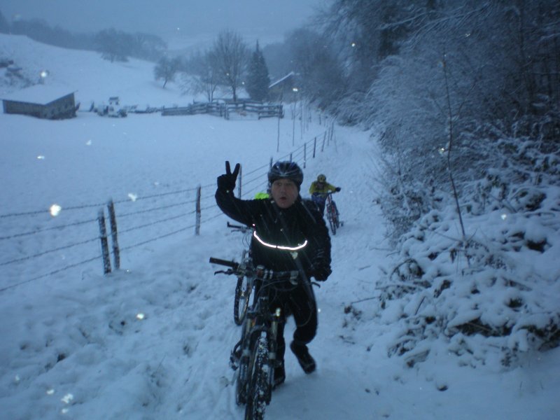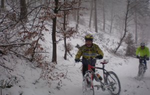 Sortie VTT du 19 décembre, dur dur la neige mais tellement beau. Michel,Christian, Patrice, Christophe ,Christophe, Fredo et Philippe Philippe LINTOT