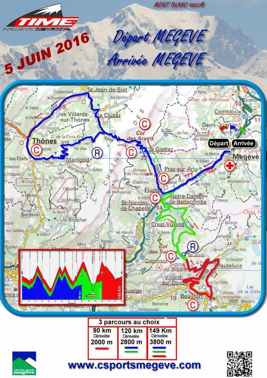 Dimanche 5 juin: Deuxième cyclosportive sélectionnée de la saison: La TIME MEGEVE nous propose une belle ballade de 149 kms avec 5 cols à gravir.